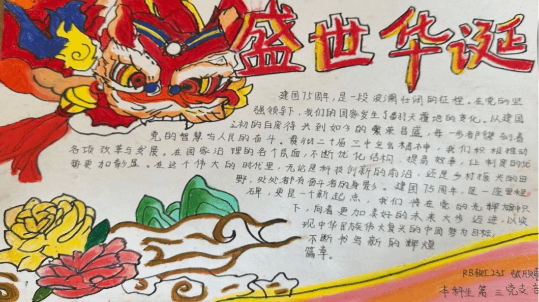 2024年12月份以来,为深入学习贯彻党的二十届三中全会精神、热烈庆祝中华人民共和国成立75周年,太阳成集团tyc33455各学生党支部开展主题手抄报绘制活动,吸引了众多党支部成员积极参与,大家通过艺术的形式,融合了理论学习与实践操作,在实践的过程中,深刻领会党的二十届三中全会精神的内涵。