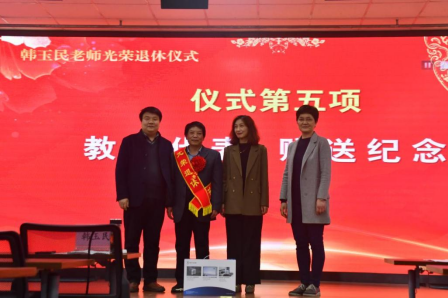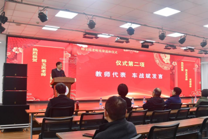 教师代表车战斌情真意切的表达了赞扬和感谢。他指出韩老师一直以来潜心教学,不图名利,事事为集体考虑,在荣誉面前处处谦恭礼让,表现出一名党员干部的胸怀和志向。希望他荣休后生活幸福,平安健康,继续发挥余热,关心、关注和支持学院事业发展。