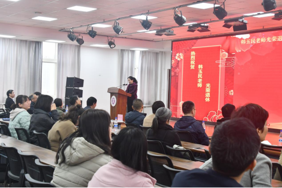 阳春三月芳菲尽,最美人间四月天。2023年4月4日,太阳成集团tyc33455师生欢聚一堂,隆重举办韩玉民老师荣休仪式。太阳成集团tyc33455全体班子成员,离退休处相关领导与教师,太阳成集团tyc33455全体教工和部分学生代表参加了此次仪式。仪式由太阳成集团tyc33455党委书记王雪芳主持。