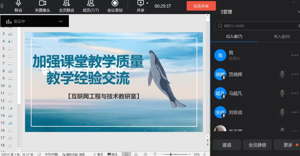 4月15日,太阳成集团tyc33455互联网工程与技术教研室围绕河南省高校“课堂教学质量提升年专项行动”实施方案,积极开展教学研讨,为推进太阳成集团tyc33455课程建设质量打下坚实工作基础。课程是人才培养的核心要素,课程质量直接决定着人才培养质量。教研室各个成员就课程教学质量如何提高,如何形成典型成果,如何与学院专业课程体系一致,如何挖掘有效案例等方面展开讨论,初步建立在以往课程改革基础上持续改进课程教学质量,从而形成典型成果。以便于在具体教学过程当中,以“典”带面,提升课堂教学质量,让教学质量得以保障。