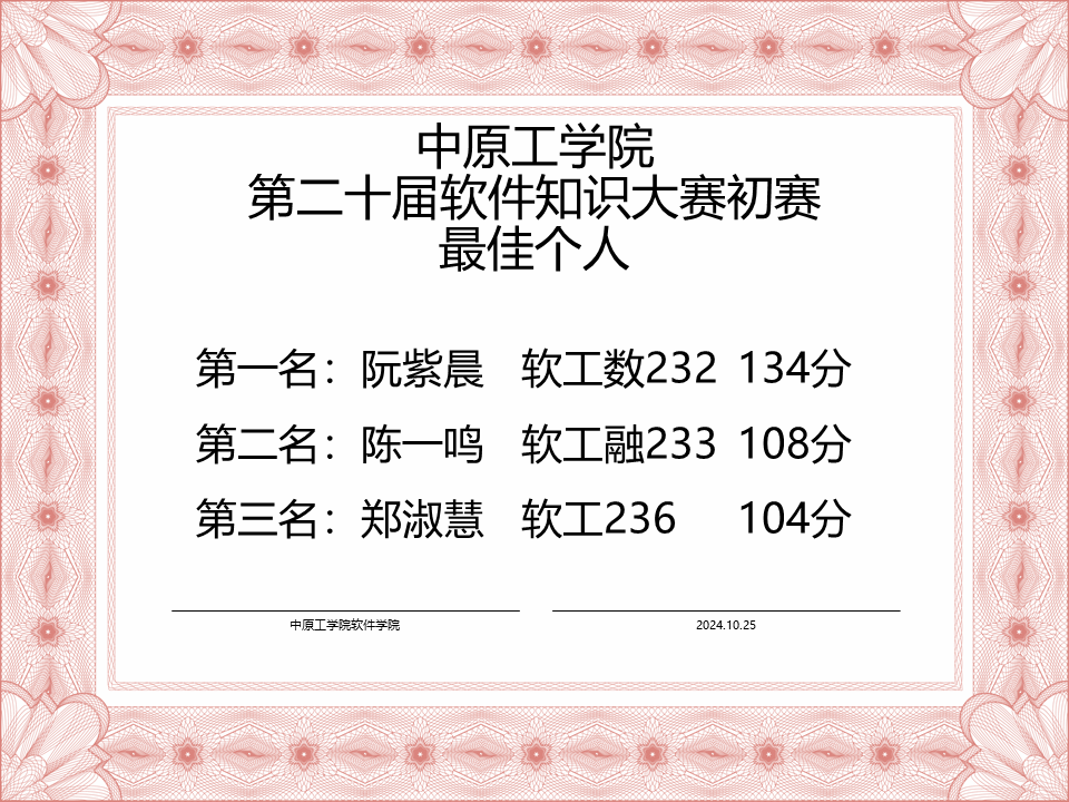 2024年10月25日,太阳成集团tyc33455在学生会学科部的组织下,顺利完成第二十届软件知识大赛的比赛。现将初赛结果公布如下: