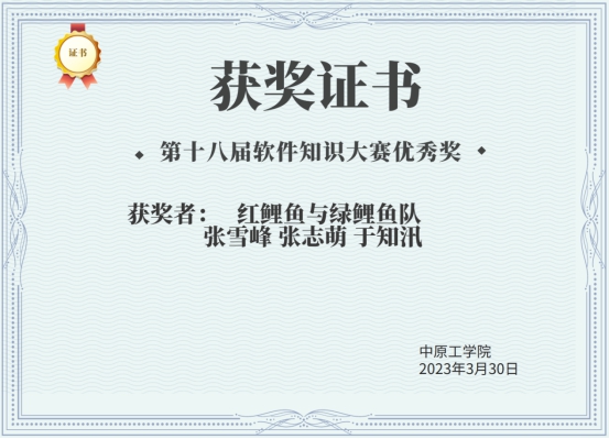 经过激烈的三大环节,最终由第二组获得第十八届软件知识大赛一等奖。第一组获得第十八届软件知识大赛二等奖。第四组获得第十八届软件知识大赛三等奖。其他三组获得第十八届软件知识大赛优秀奖。(详情请见附件一)