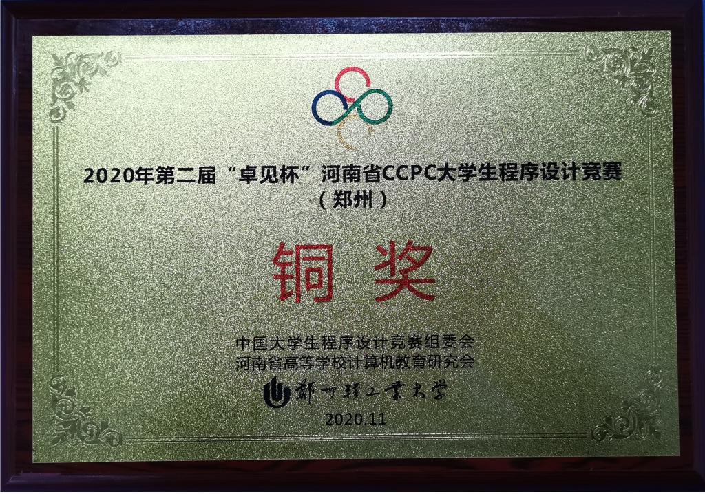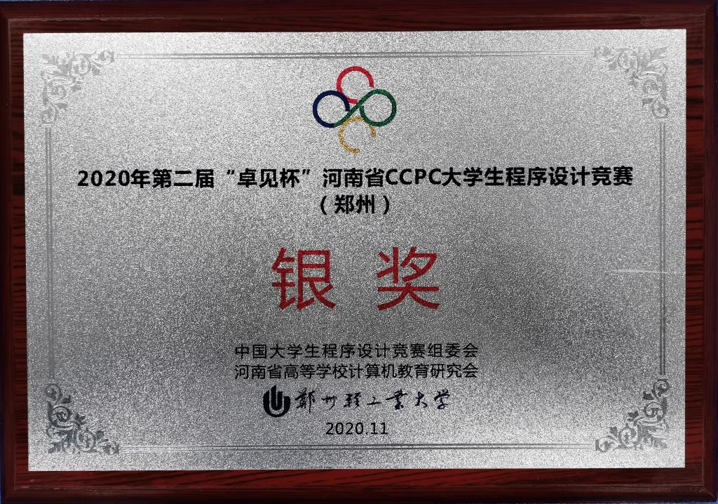 2020年11月21日,2020年第二届河南省CCPC大学生程序设计竞赛在线上举行,我院5支参赛团队全部获奖,经过5个小时激烈比赛,最终获得了2枚银奖、2枚铜奖和1个优胜奖。