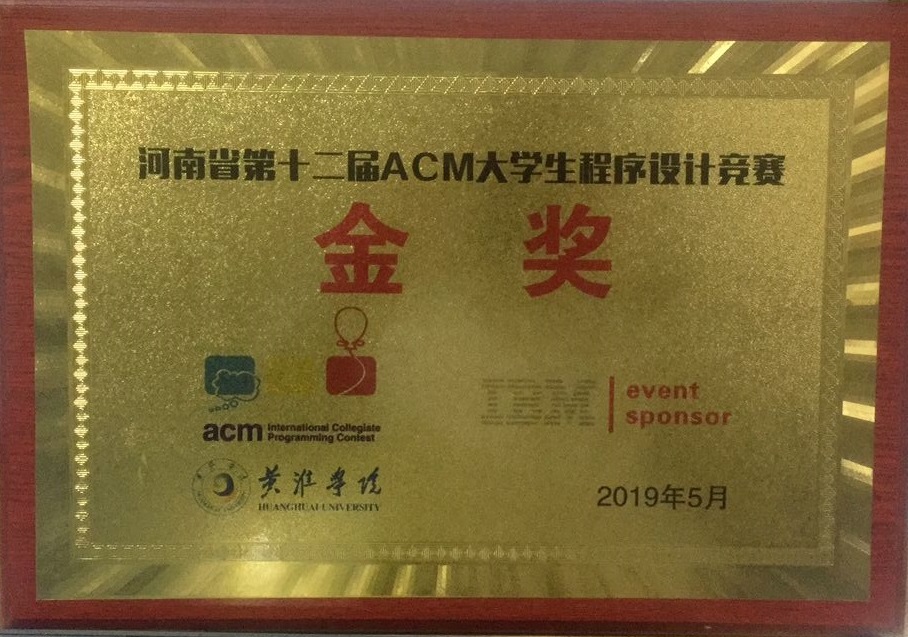 喜报:我院学生在河南省第十二届ACM大学生程序设计竞赛中获金奖