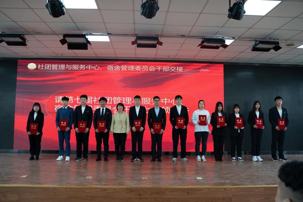 刘欢老师宣读第六届优秀社团管理与服务中心、宿舍管理委员会干部名单、负责人名单并为第六届干部颁发荣誉证书,刘欢老师感概到:“今日,你转身沧海,离开了你们所热爱的社团管理服务中心,而它仍静守天长,蓬勃生长,感谢你们的付出。”。安榜老师宣读第七届社团管理与服务中心、宿舍管理委员会干部名单、负责人名单,并为第七届干部颁发聘书,安榜老师寄语到:“今日,你们就要走出上一届引路人的庇护,愿你们不忘初心,带领社团管理服务中心走向更辉煌的明天。”。