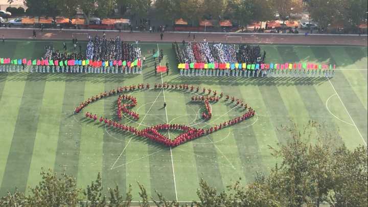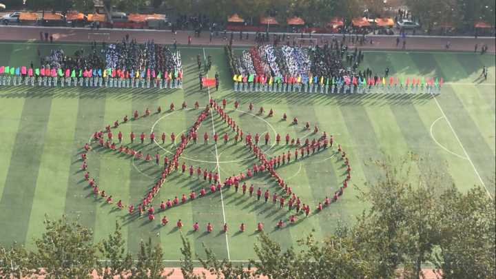 伴着紧张而急促的鼓点,一枚红色五角星随着同学们的队形变换渐渐浮现,随着表演者手中金色花球的不断舞动,这枚象征着希望与光明的五角星愈发闪耀,随之变换的奥运五环,更是体现着我院学子对“更高,更快,更强”精神的不倦追求,最终,队形换化出优美的弧线,定格为一个的完美的扇形,中书“R J”英文字母,既是对我院院名的呼应,又是对“软件改变生活,软件创造价值”的再次强调。整场团体操,阵形变换繁而不杂,让人目不暇接的同时也让人忍不住惊叹这支队伍的井然有序,每一次的变换,都能做到迅速且协调,让人不由的赞叹于社联这个集体所凝聚的团结之力。