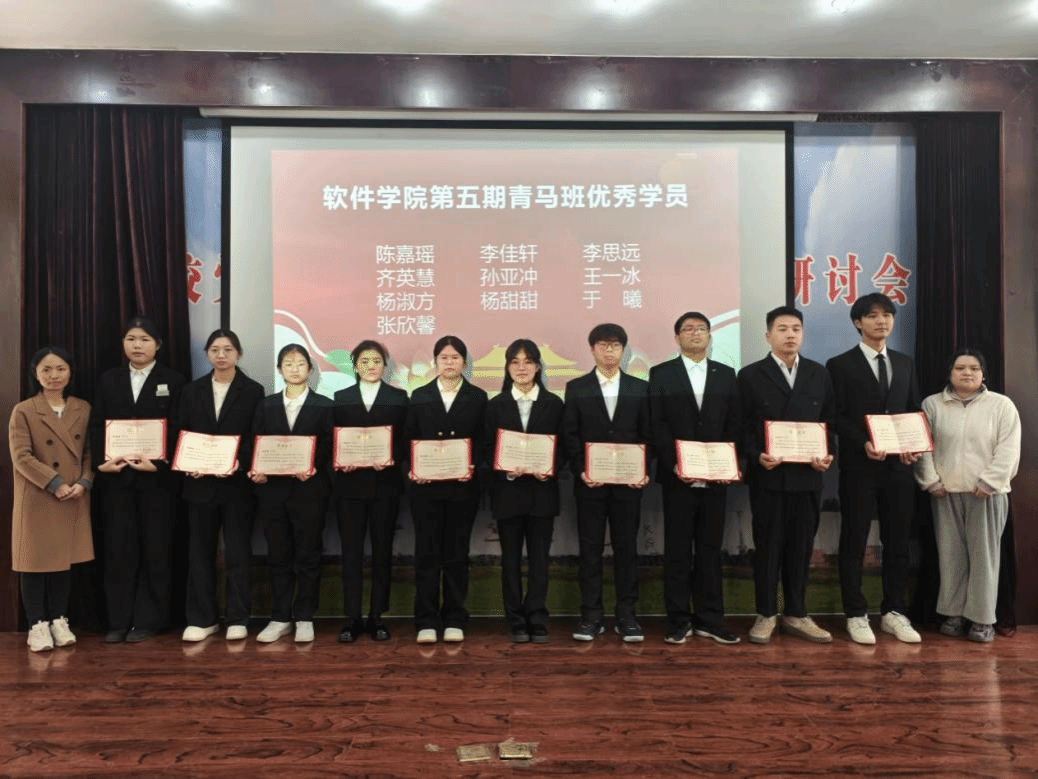 随后,刘珂萌老师宣读了《关于表彰太阳成集团tyc33455第五期青马班优秀学员的决定》,陈嘉瑶、齐英慧、杨淑方等10名学员获此殊荣。优秀学员代表张欣馨分享了学习心得,杨淑方等四名学员朗诵了诗歌《青春的交响曲》,以青春之声传递理想信念。