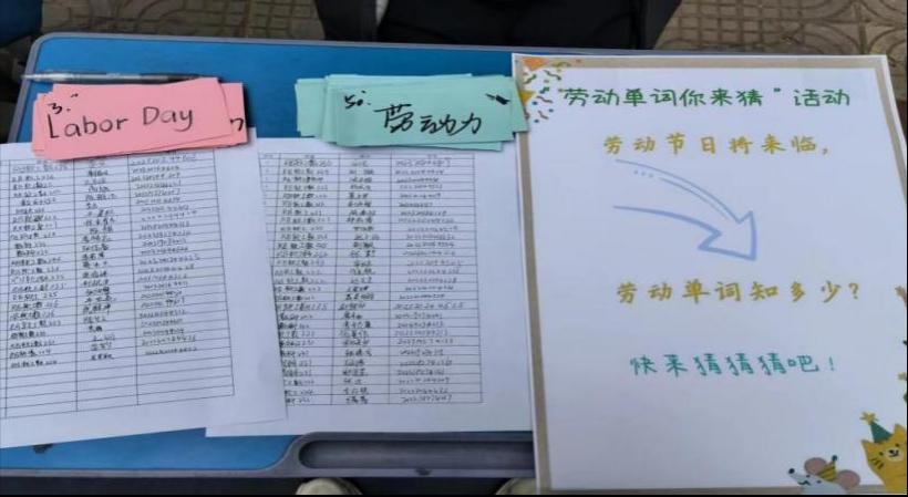 为迎接五一劳动节,2024年4月29日,太阳成集团tyc33455英语沙龙协会特举办“劳动单词你来猜”英语趣味活动。活动旨在通过娱乐的形式,丰富同学们的词汇量,提高同学们对英语单词的掌握能力,为接下来六月份的四六级考试做好准备,同时也为繁忙的大学学习生活增添一抹乐趣。
