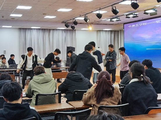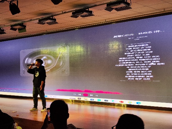 本次晚会的节目丰富多彩,歌曲演唱和互动游戏穿插其中。在主持人开场致辞结束后,先是由王艺然同学演唱歌曲《笑》,营造了轻松的气氛。随后是桃花朵朵开和对视比赛两个互动游戏,将同学们之间的距离迅速拉近,大家在参与游戏的过程中认识和熟悉彼此。紧接着的是歌曲《落叶归根》,唱出了同学们对家乡的思念之情。在猜歌名和你画我猜的游戏中,小组之间互赛互拼、火药味十足,比猜的同学动作夸张有趣,令现场观众忍俊不禁,欢快尽兴。接着,在一曲《就是爱你》歌曲结束后,晚会迎来了最后两个互动游戏抢板凳和踩气球,现场气氛瞬间被点燃,晚会也进入到了“双十一”主题的高潮。晚会以歌曲《搁浅》以及付沛熙同学带来的歌曲《裹着心的光》激情收尾。活动最后,主持人根据游戏累加的综合得分对获胜小组进行颁奖,现场所有参与人员进行了合照留念。