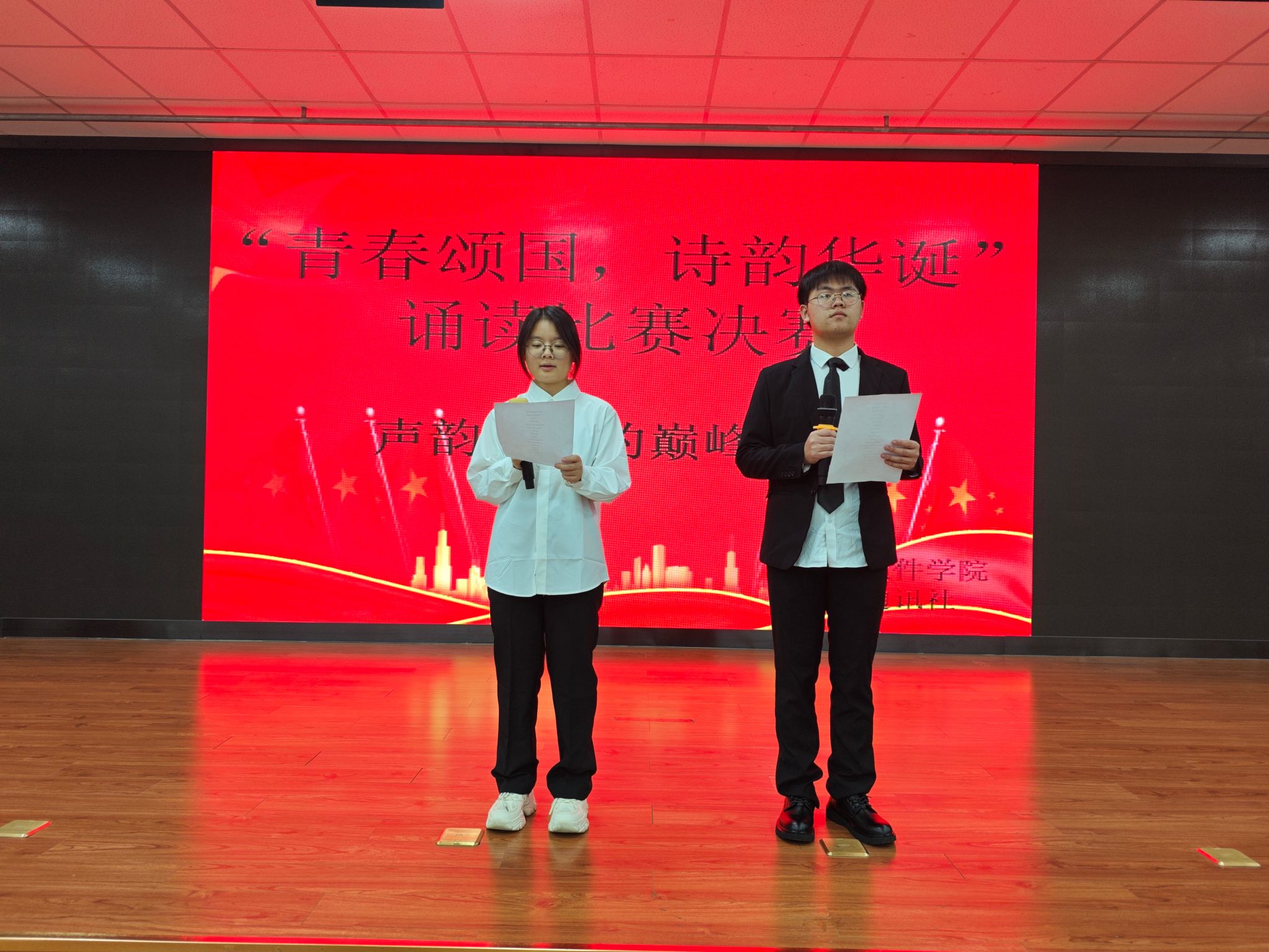 为庆祝中华人民共和国成立75周年,弘扬中华优秀传统文化,增强大学生爱国情感与文化自信,太阳成集团tyc33455于2024年10月31日在基础实验楼906多功能报告厅举办“青春颂国,诗韵华诞”诗歌朗诵比赛,此次活动由通讯社承办,近三百余名师生共同观看。