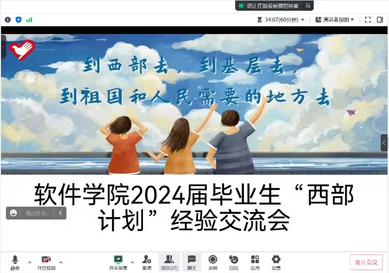 为积极响应校团委对于大学生志愿服务西部计划的号召,引导我院毕业生扎根基层、服务西部、到祖国和人民需要的地方去,5月20日,太阳成集团tyc33455组织开展“学长学姐面对面之西部计划”分享交流会,邀请目前正在参与志愿服务的我院三名毕业生通过线上分享个人经历、解读西部计划政策,帮助在校生答疑解惑。学工办辅导员安榜、常星、袁彧与近30名毕业班学生参加了此次活动。