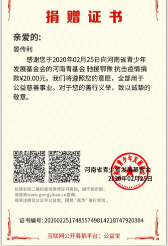 除了身体力行的社区志愿服务,同学们也都纷纷捐款献爱心,数不在多,在于同学们浓浓的心意。也表达了对抗战一线医护工作者的敬意!