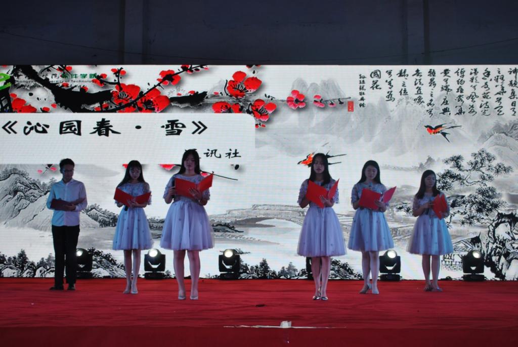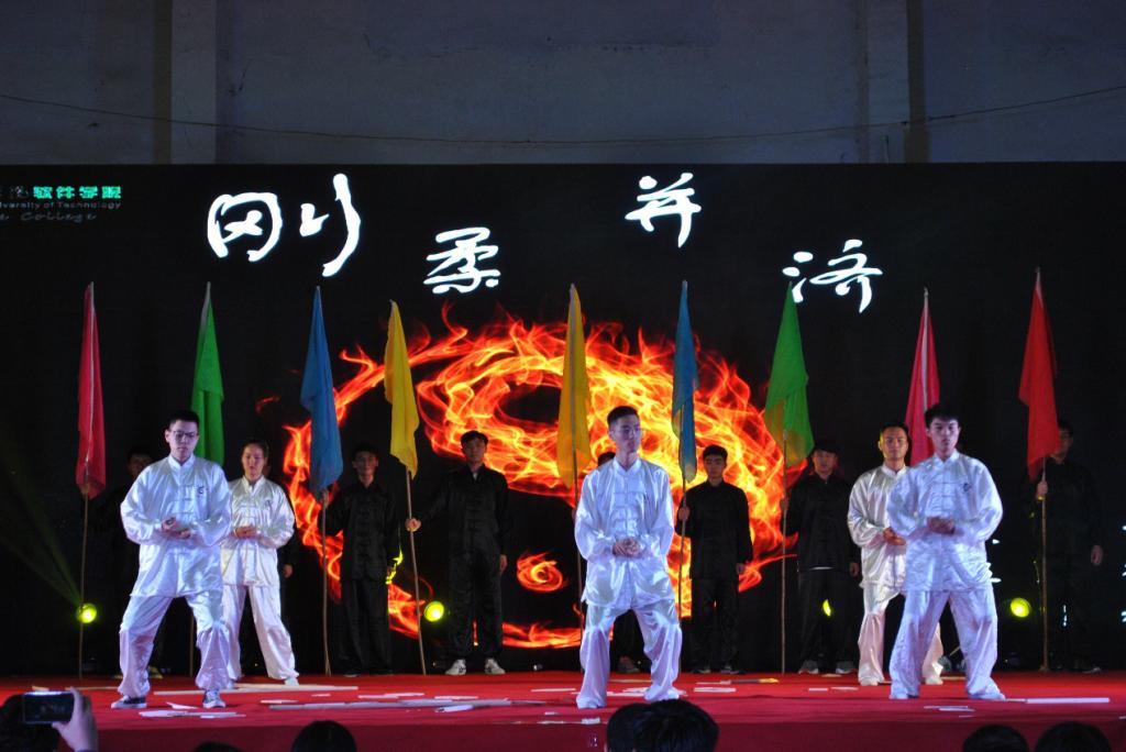 随后是动漫社的《Share the love》和民舞社《青蛇puma》;武术协会、太极社等表演了《刚柔并济》;而话剧社携手大学生创业协会奉献了《大学生活》;一首《一万次悲伤》是由两位入学新生献唱,一万次悲伤,依然会有dream;街舞社的《Keep on dancing》希望大家能一直保持活力;小品《匆匆那年》;健美操社的《Bang Bang》;通讯社的朗诵;音乐社的《最美的太阳》......一场又一场的表演使同学们情绪高涨,掌声不断。