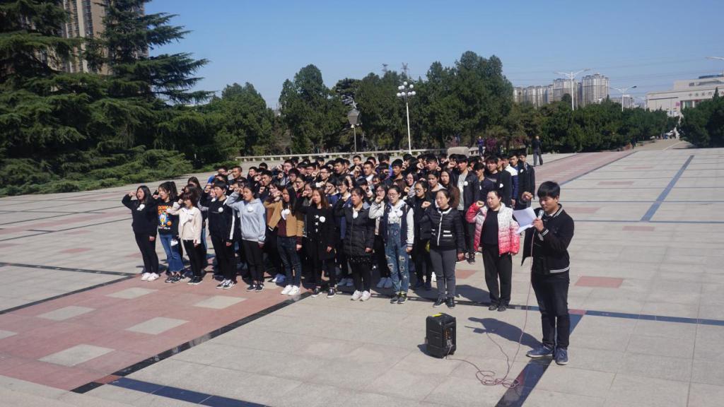 上午八时,参加祭扫活动的师生怀着崇敬的心情,在革命烈士纪念碑前集体默哀,并庄严宣誓,志愿以实际行动向革命先烈们致敬,志愿将党和国家的未来扛在肩上,成为新时代年轻人的榜样。最后,师生们将自己亲手折的小白花敬献在烈士纪念碑底座的花丛中,以寄托哀思。