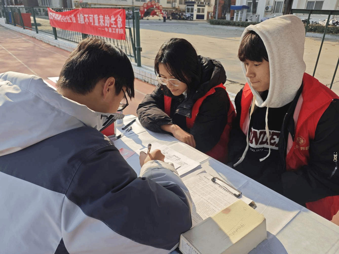 本次活动中我院学生志愿者们也扮演了关键角色,他们忙碌地穿梭在人群中,为献血者递上一杯热水,引导他们完成各项流程,周到的服务让整个献血过程充满了温暖。