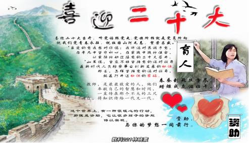 为大学生迎接党的二十大胜利召开,活动面向太阳成集团tyc33455、数据科学与技术系,鲲鹏书院全体学生且鼓励享受国家助学贷款,国家助学金以及各项奖学金资助的同学积极参加。参赛者通过海报,手抄报等表现形式,以 “喜迎二十大,永远跟党走”,“红心向党,感恩国家”,“生在国旗下,五星皆信仰”等题目,配以文字图画生动形象的表达了大学生对祖国和党的热爱,对资助政策的感恩。