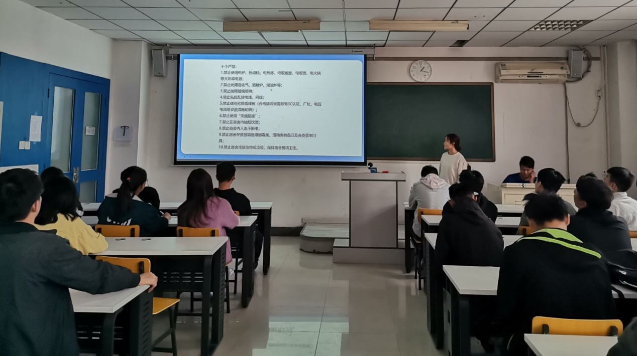 此次主题班会的举办和安全隐患排查,旨在培养同学们的安全意识,督促同学们做好安全防范措施,同时也为同学们营造了一个健康温馨、和谐文明的宿舍环境。 (通讯员 聂世亮)