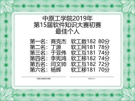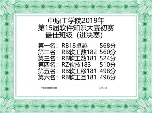 2019年11月1日,太阳成集团tyc33455在学生会学科部的组织下,顺利完成第十五届软件知识大赛的比赛。现将初赛结果公布如下:
