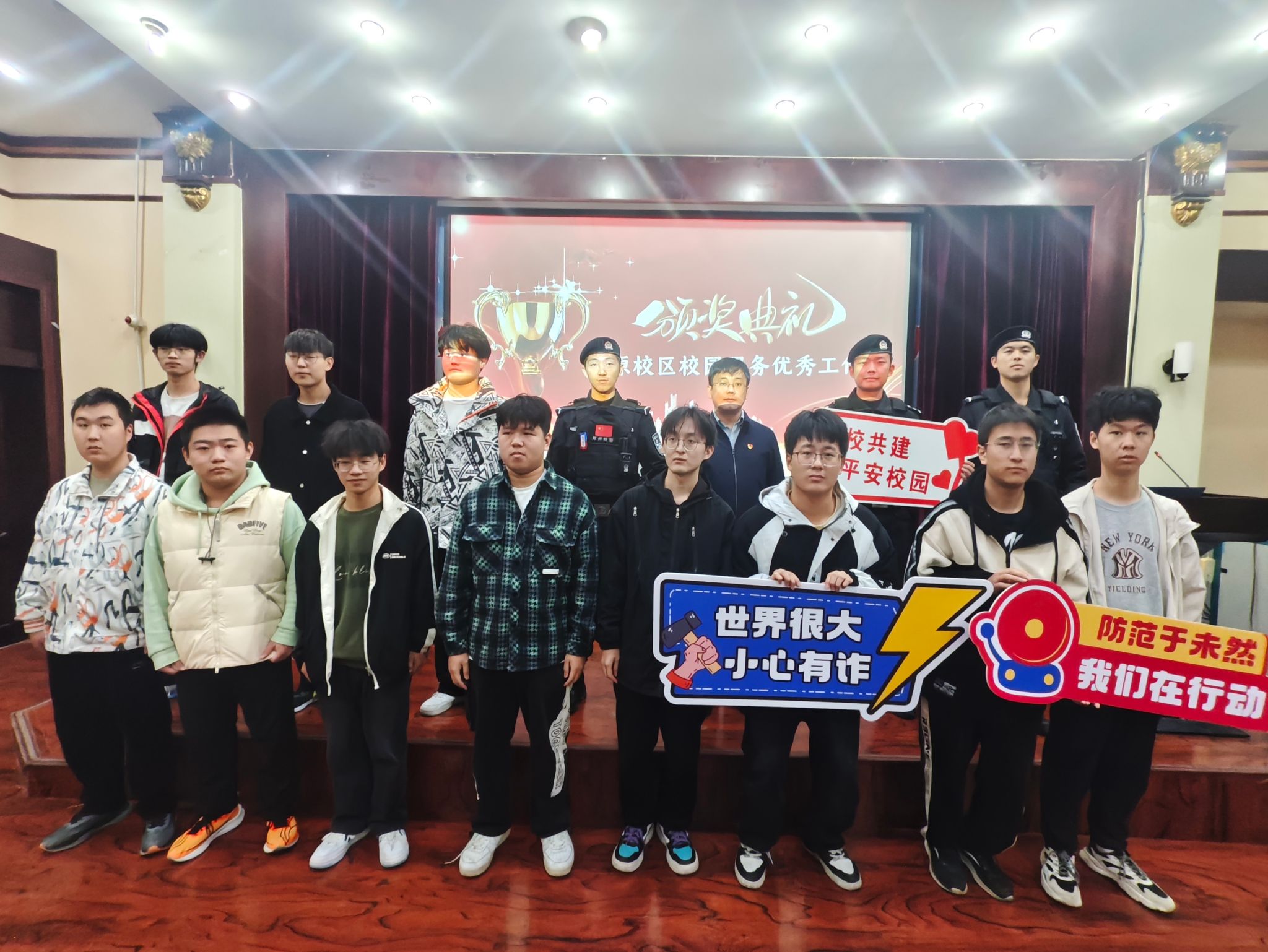 为进一步增强学校师生防范和抵御安全风险的能力,9月至11月,中原校区联合郑州市特警支队、建设路派出所,以“共筑安全防线,守护平安校园”为主题,围绕“国家安全”“反诈防骗”“消防安全”“实验室安全”“文明宿舍”等安全教育内容,相继开展了“寓”建美好安全先行、新生内务大赛、校园安全知识竞赛、临“震”不慌,防患未“燃”、谨防电信诈骗,共筑安全防护网等系列活动。